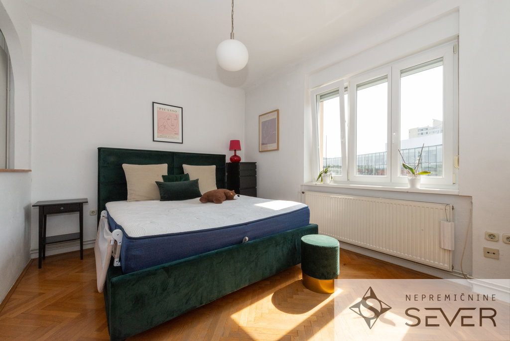 V samem srcu Ljubljane, le nekaj korakov od Centra Rog in Ljubljanice, se oddaja izjemno svetlo, prostorno in popolnoma opremljeno meščansko stanovanje z visokimi stropovi in edinstvenim karakterjem.